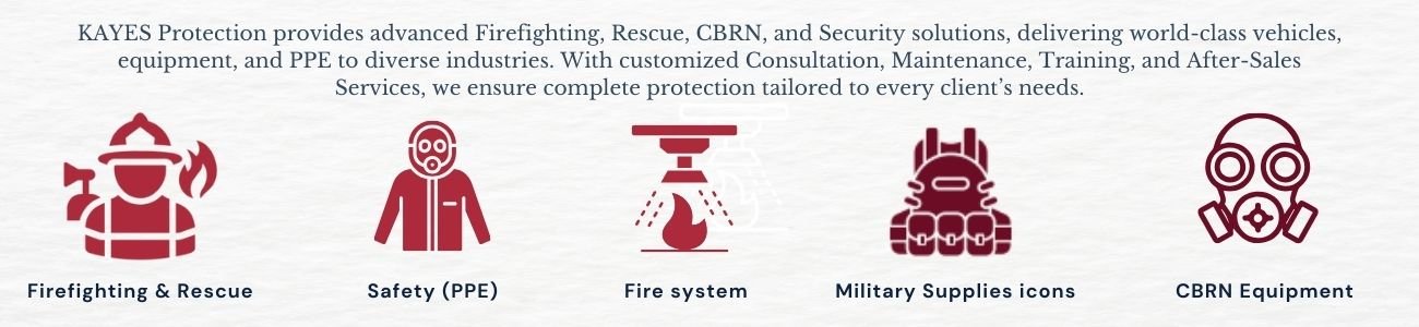 Established in 2012, KAYES Protection is a leading Saudi company providing advanced Firefighting & Rescue Vehicles, Fire Safety Systems, Personal Protective Equipment (PPE), and CBRN equipment. With our strong presence in Riyadh, we proudly contribute to the growth of national emergency response capabilities across Saudi Arabia.